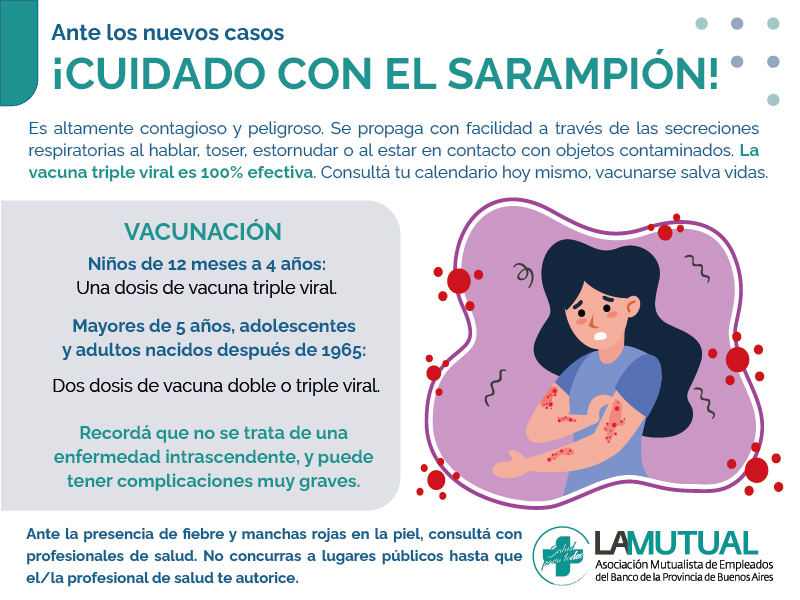 Se reportaron nuevos casos de Sarampión, y desde La Mutual te traemos datos para que te mantengas informado y evites posibles contagios. Recordá que no se trata de una enfermedad intrascendente, y puede tener complicaciones muy graves. Consulta tu calendario de vacunación hoy mismo, vacunarse salva vidas.